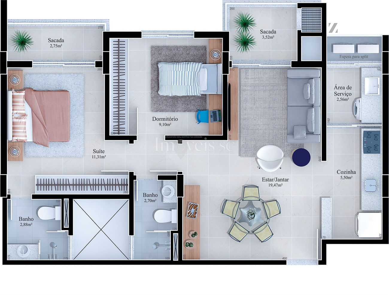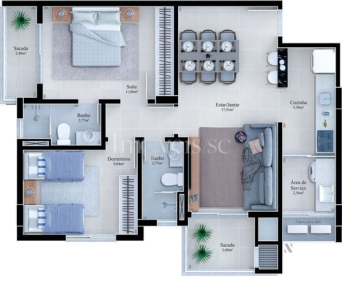 Até 70,58m² de área privativa