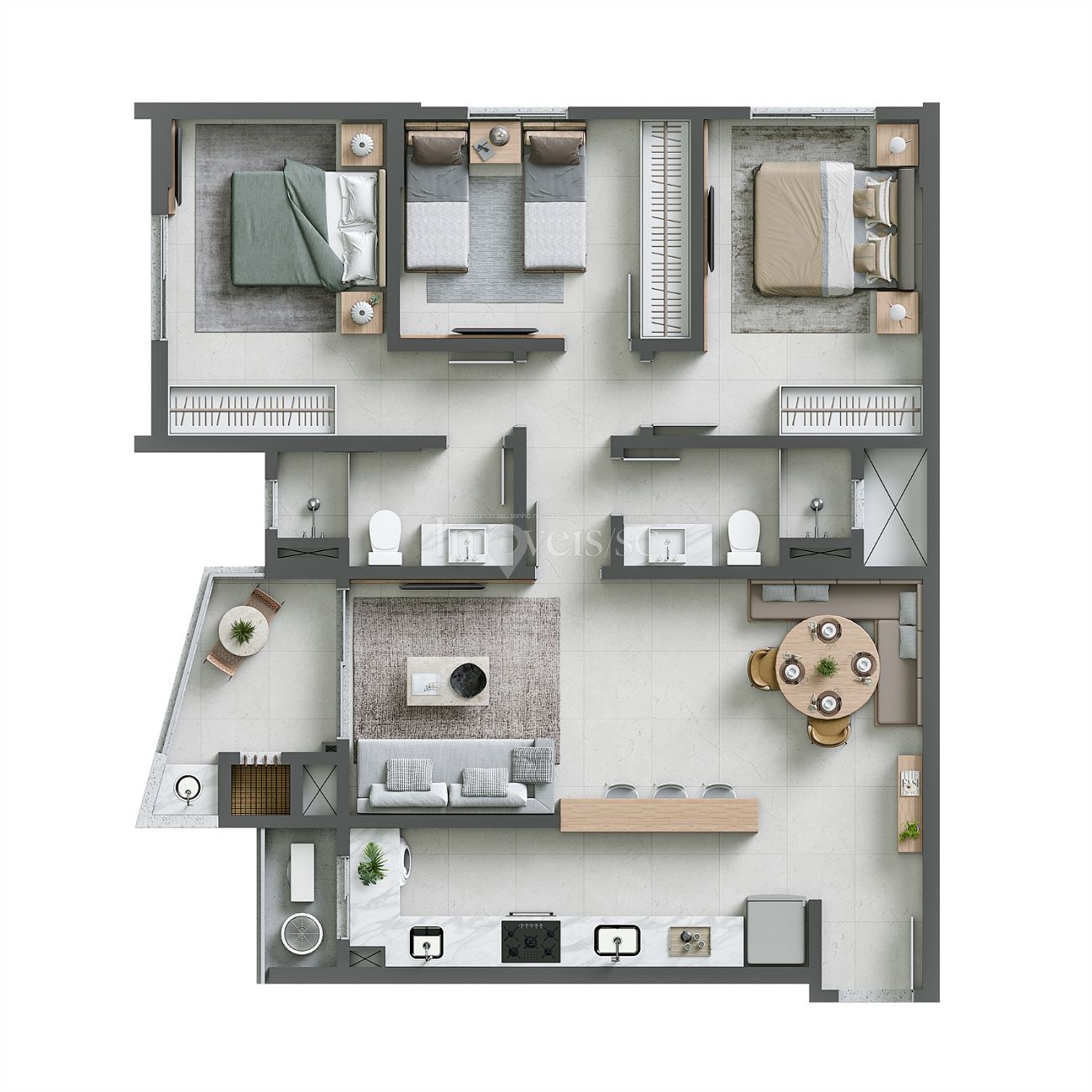 3 dormitórios (1 suíte)