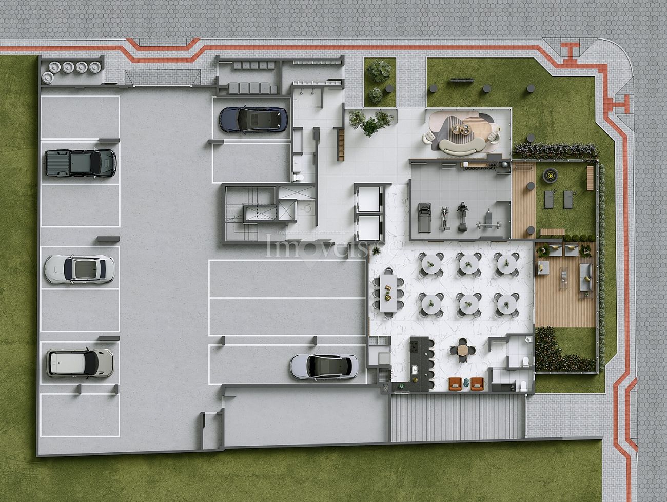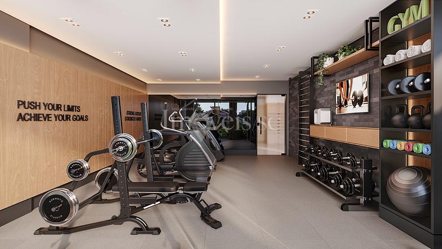 Espaço fitness com terraço