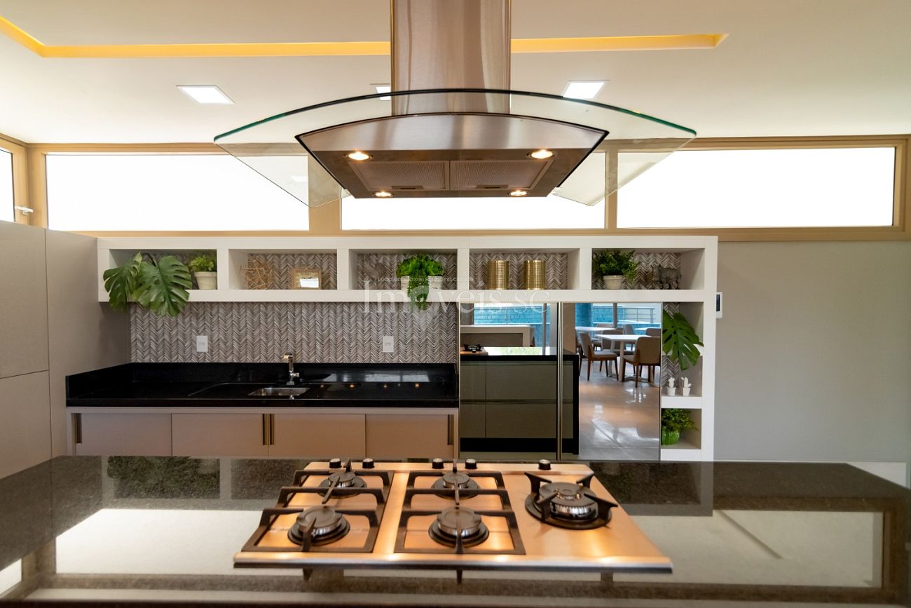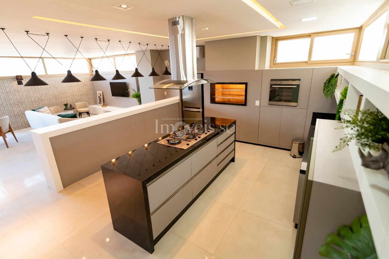 Sacada gourmet integrada ao living