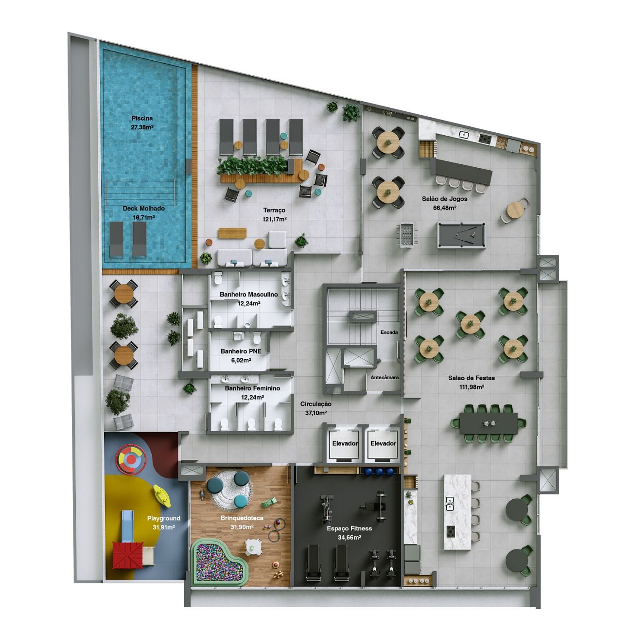 O Thiene oferece uma área de lazer completa, com ambientes projetados para atender todas as idades e tornar a rotina mais leve e prazerosa.