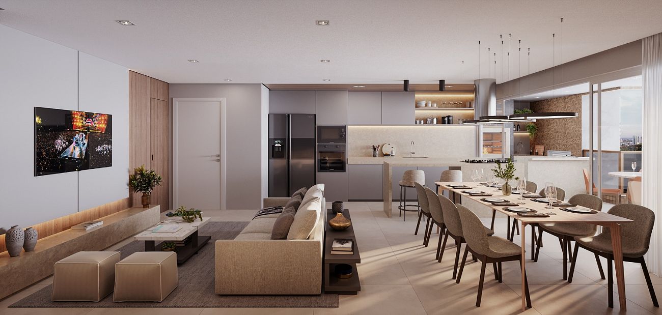 Os ambientes unem conforto, tecnologia e estética, criando um lar moderno, funcional e com uma atmosfera acolhedora.