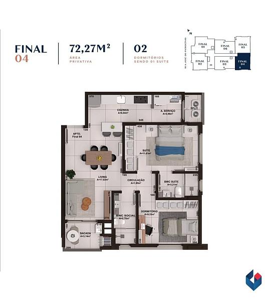 2 DORMITÓRIOS – 74 M² PRIVATIVOS